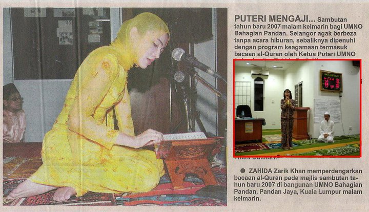 pasai ape bila Big Mama bertazkirah Dato' Azib tak pertikai sebab dia pun tak pakai tudung dan ramai lagi wanita dan putri UMNO yang tak pandai pakai tudung....tidakkah ini mencemarkan kesucian masjid wahai ........... dan Dato Azib????? bukankah itu sebagai alasan menghukum YB Teo serta barisan surau al-Huda ?